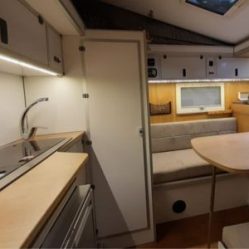 - Afmetingen (L x B x H) : 6.00m x 2.10m x 1.95m/2.80m (binnenkant/buitenkant camper)